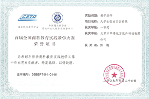 “創(chuàng)業(yè)實(shí)訓(xùn)系統(tǒng)”榮獲中國商業(yè)聯(lián)合會(huì)2009年全國實(shí)踐教學(xué)大賽一等獎(jiǎng)“中國商業(yè)科技進(jìn)步獎(jiǎng)”二等獎(jiǎng)